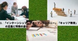 1. 「インターンシップ」「オープンカンパニー」「キャリア教育」の定義と特徴の違い